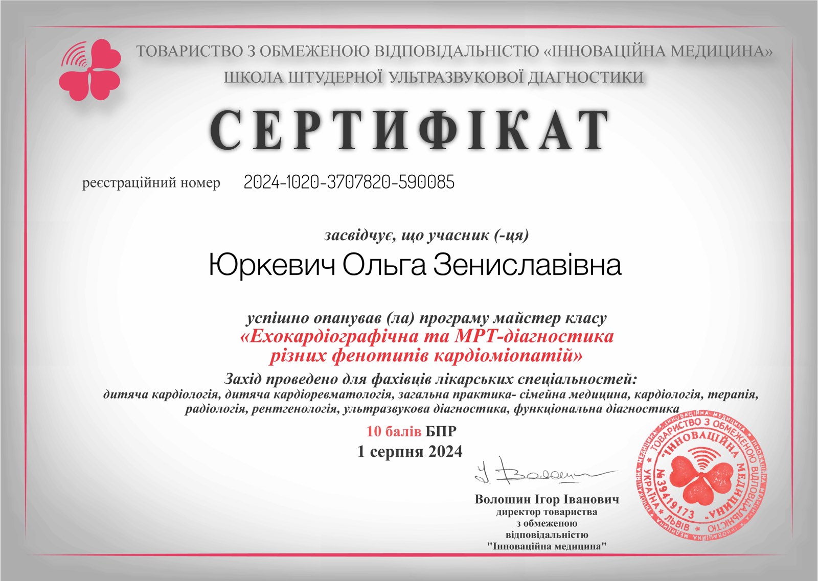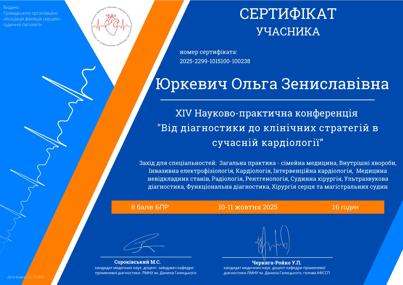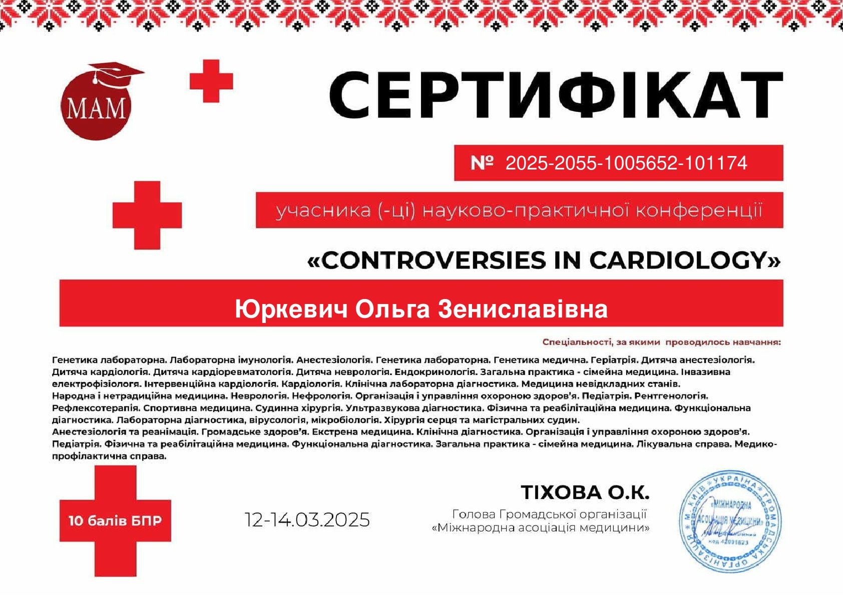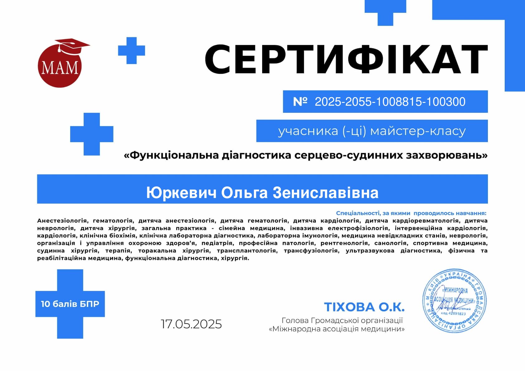Для надання пацієнтам допомоги на найвищому рівні, лікар Ольга Юркевич регулярно бере участь у провідних наукових заходах та майстер-класах, постійно оновлюючи свої знання: